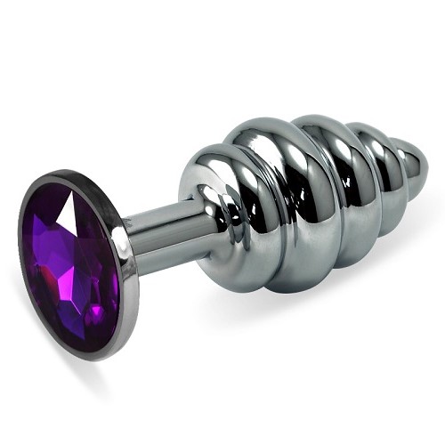 ЗакрытьАнальная пробка из стали рифленая с фиолетовым кристаллом Rosebud Classic S