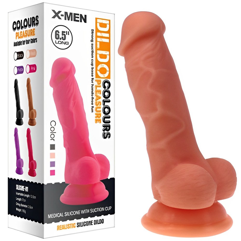 ЗакрытьРельефный фаллоимитатор телесного цвета X-Men 17 см