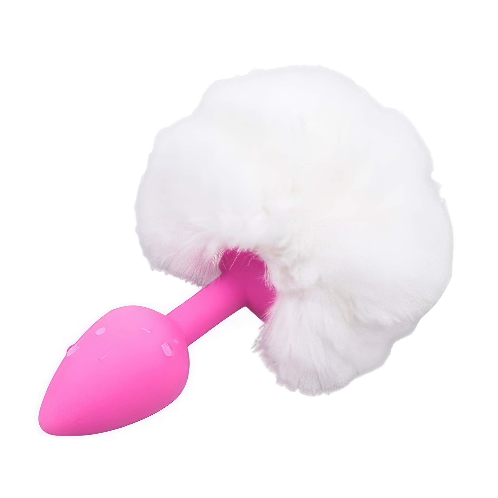 ЗакрытьРозовая анальная пробка с белым хвостом